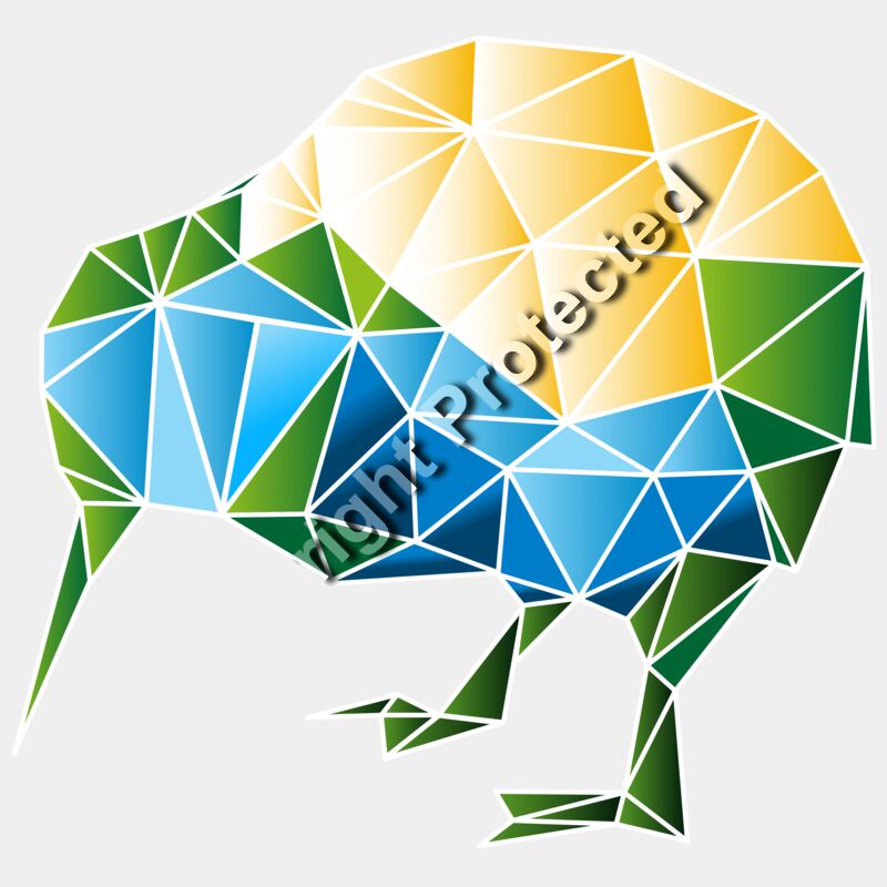 The icon of New Zealand - the flightless kiwi. Drawn in a Low Poly artistic style.