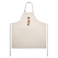 Adjustable shoulder strap, YKK metal strap adjuster, front patch pocket, self fabric waist and neck ties, top stitch detailing, preshrunk to minimise shrinkage